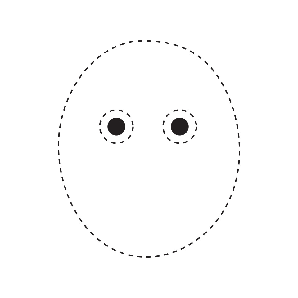 Draw two small circles within the oval for the eyes. Draw another circle within the two small circles and shade the inner one black.