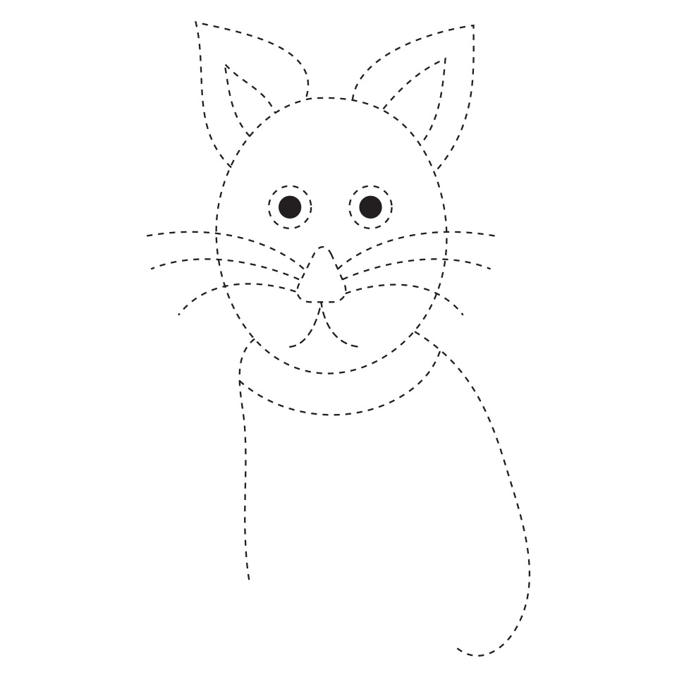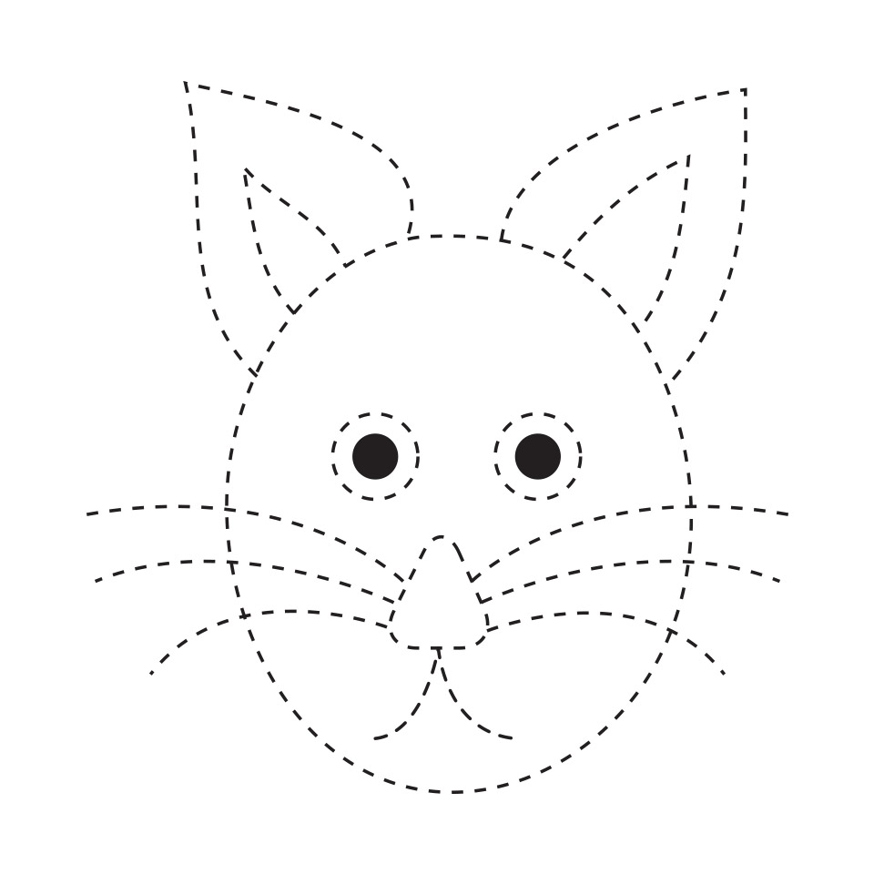 Let us begin by drawing an oval for the cat’s face