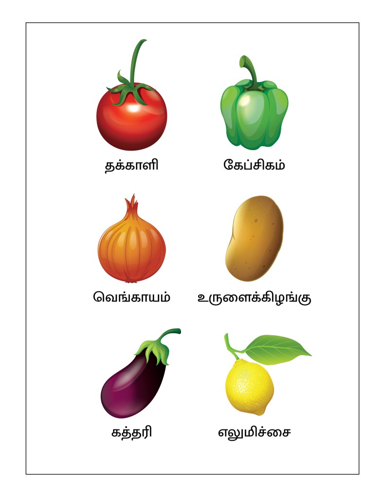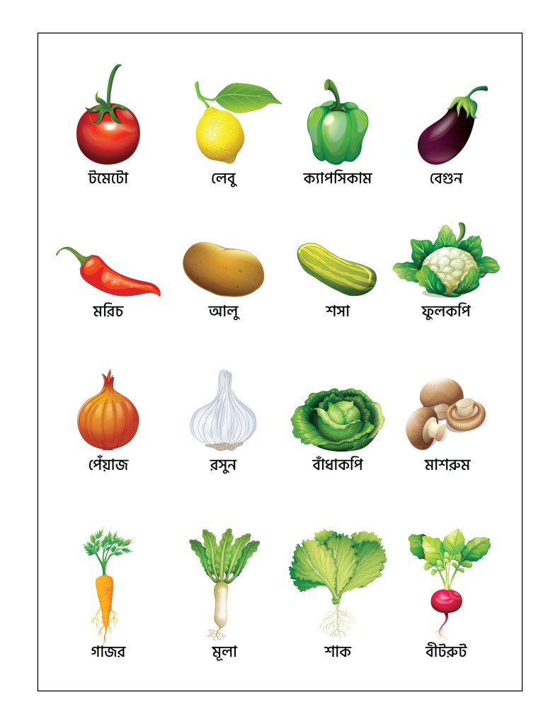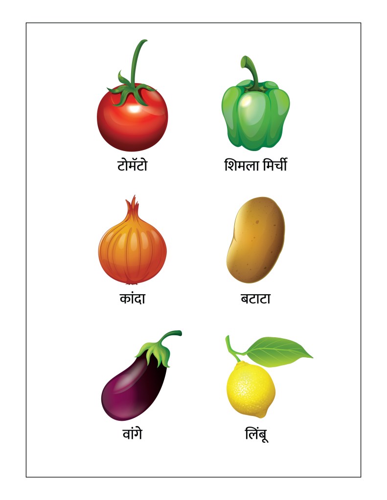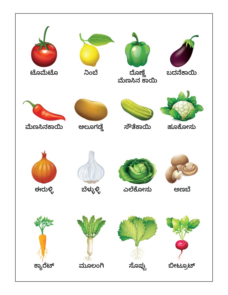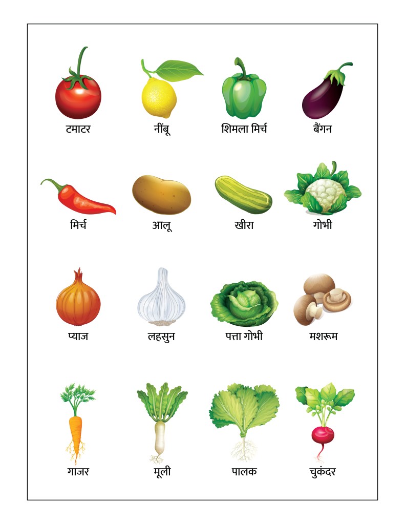To help children in learning their vegetables, today we are providing two worksheets – The Common Vegetables Worksheet and The Advanced Vegetables Worksheet, in 8 different languages – English, Hindi, Marathi, Gujarati, Bengali, Tamil, Malayalam, and Kannada.