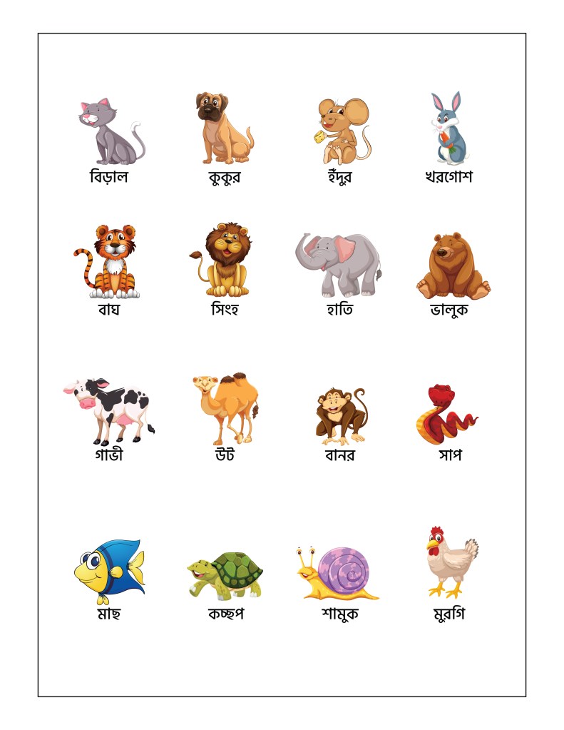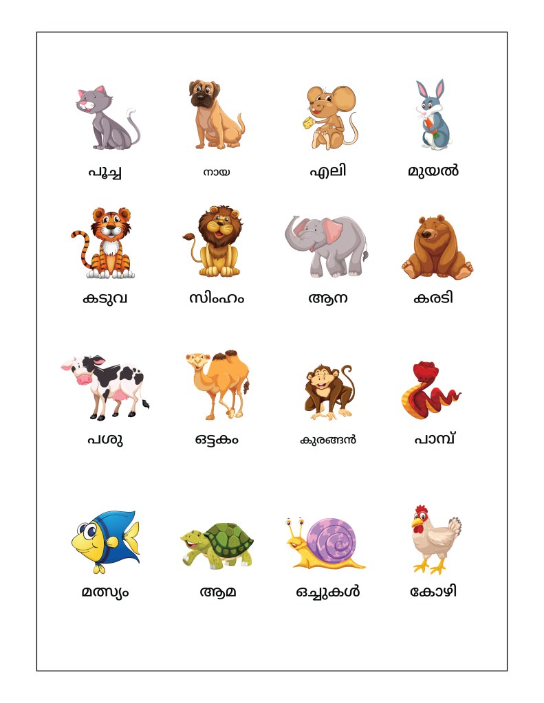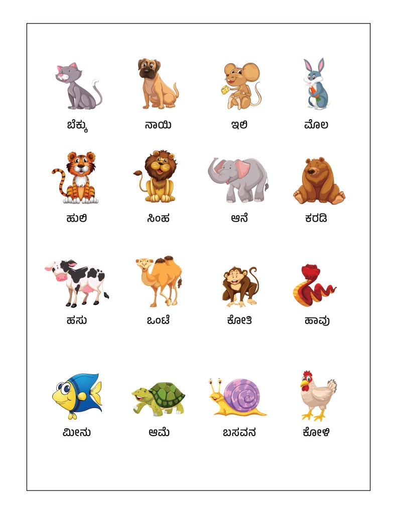 To help children in learning about their animals, today we are providing two worksheets – The Common Animals Worksheet and The Advanced Animals Worksheet, in 8 different languages – English, Hindi, Marathi, Gujarati, Bengali, Tamil, Malayalam, and Kannada.