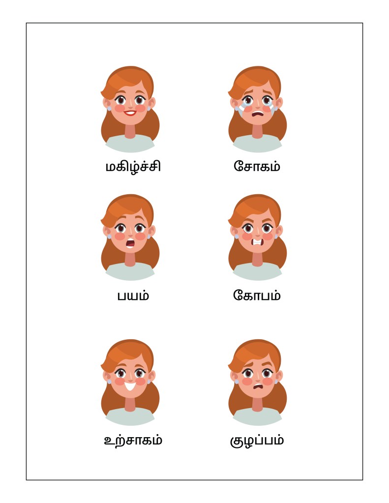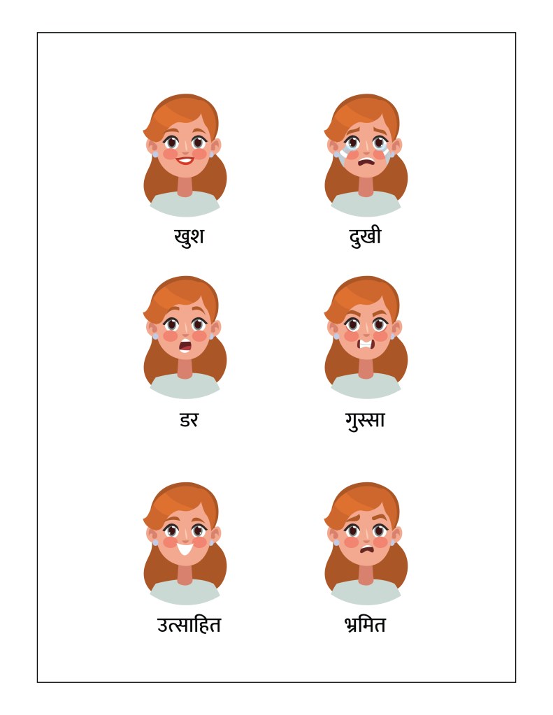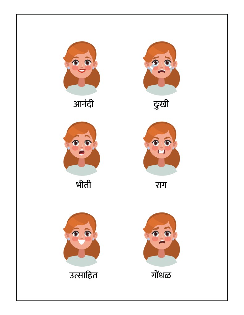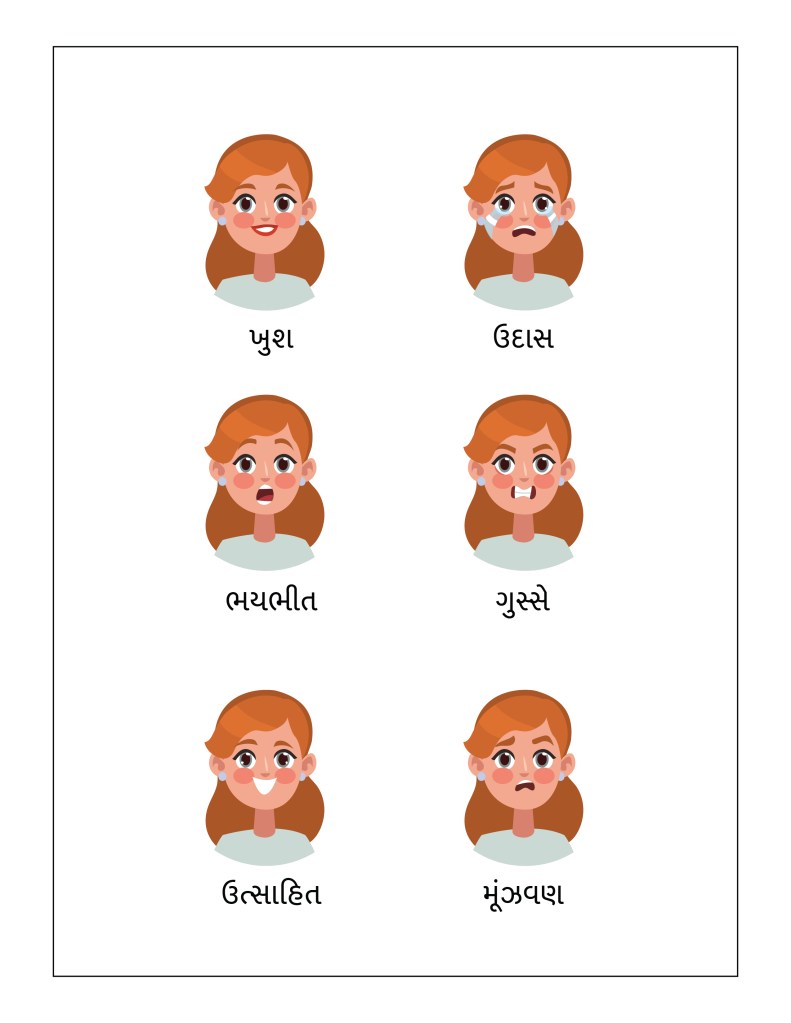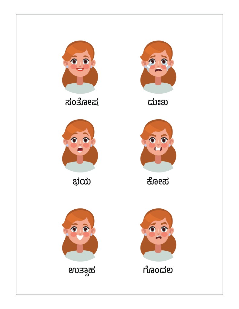 To help children in learning their feelings, today we are providing the Common Emotions Worksheet, in 8 different languages – English, Hindi, Marathi, Gujarati, Bengali, Tamil, Malayalam, and Kannada.